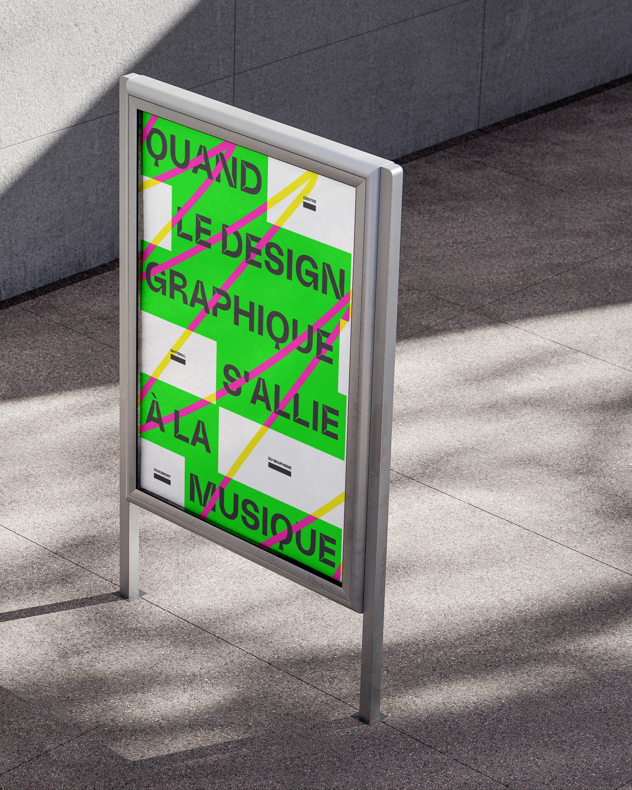 Dans le cadre de la 27ème édition du concours étudiant du Signe pour la Biennale internationale de design graphique 2025, le projet intitulé "Quand le design graphique s’allie à la musique" propose une interprétation visuelle de la thématique "Join The Playlist". Inspirée par l'énergie électro du morceau D.A.N.S.E. du groupe Justice, cette affiche utilise un fond vert acide contrasté par des diagonales vibrantes roses et jaunes pour traduire l'intensité de la fête. À travers une typographie massive et une composition déstructurée, l’œuvre capture le rythme et le mouvement irrésistible de la danse, illustrant avec force la synergie entre les univers sonore et graphique.