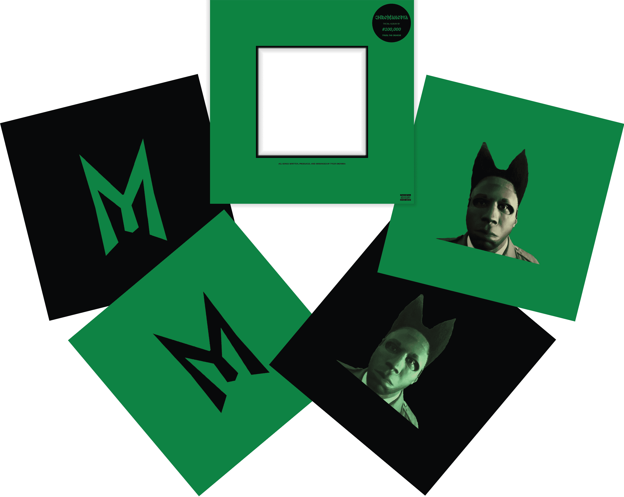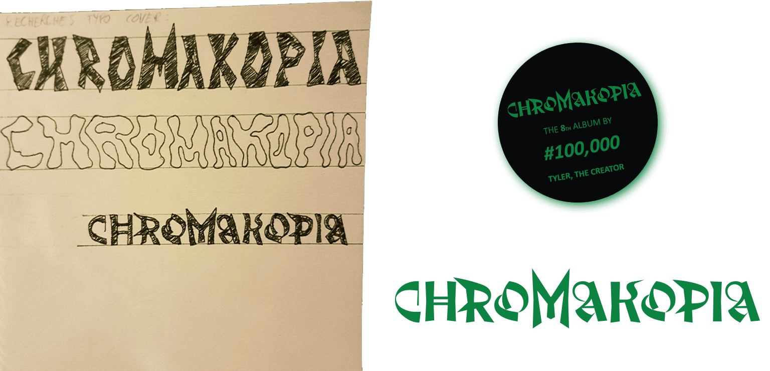 Inspiré par l’univers narratif et onirique de l’album Chromakopia, ce projet propose un rebranding complet explorant le mélange de nostalgie cinématographique et de mystère propre à Tyler, The Creator. La direction artistique s'appuie sur une typographie sur mesure, agressive et symbolique, dont le " M " personnifie l'artiste masqué pour devenir le nouveau logotype central. En hommage au travail de George Condo pour Kanye West, le concept de pochette devient interchangeable grâce à une série de quatre posters personnalisables, permettant à l'auditeur de moduler l'esthétique visuelle de l'album selon ses envies.