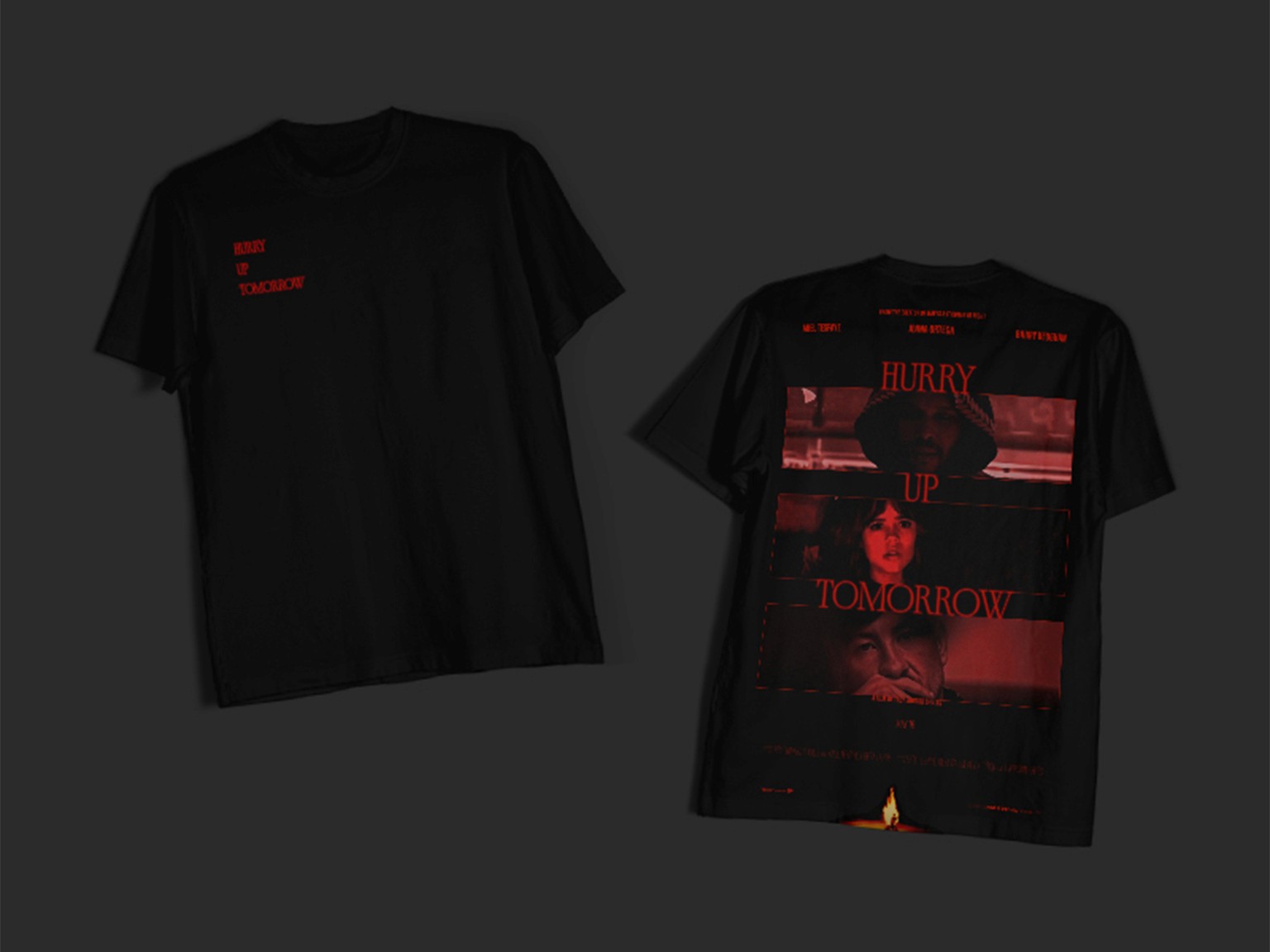 Réalisation d'un branding complet pour le film "Hurry Up Tomorrow", issue de l'album du même nom, réalisé par Trey Edward Shults et produit par The Weeknd, Kevin Turen, Reza Fahim, Harrison Kreiss.