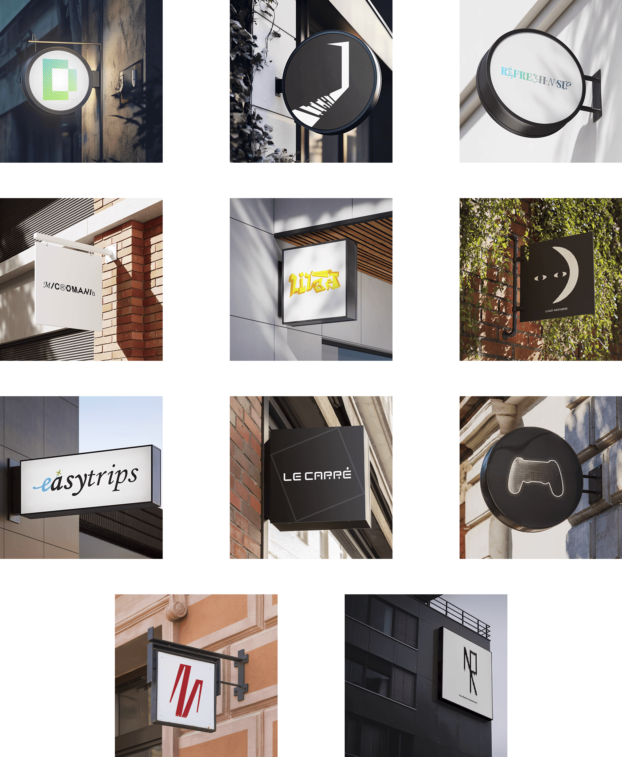 Lancé début 2024, ce défi consistait à imaginer une série de logotypes pour des entreprises soit fictives soit existantes. L'objectif était d'explorer une grande diversité de secteurs et de styles graphiques. Ce projet a servi de laboratoire d'expérimentation, me permettant de tester différentes approches conceptuelles et techniques tout en développant une réactivité créative.