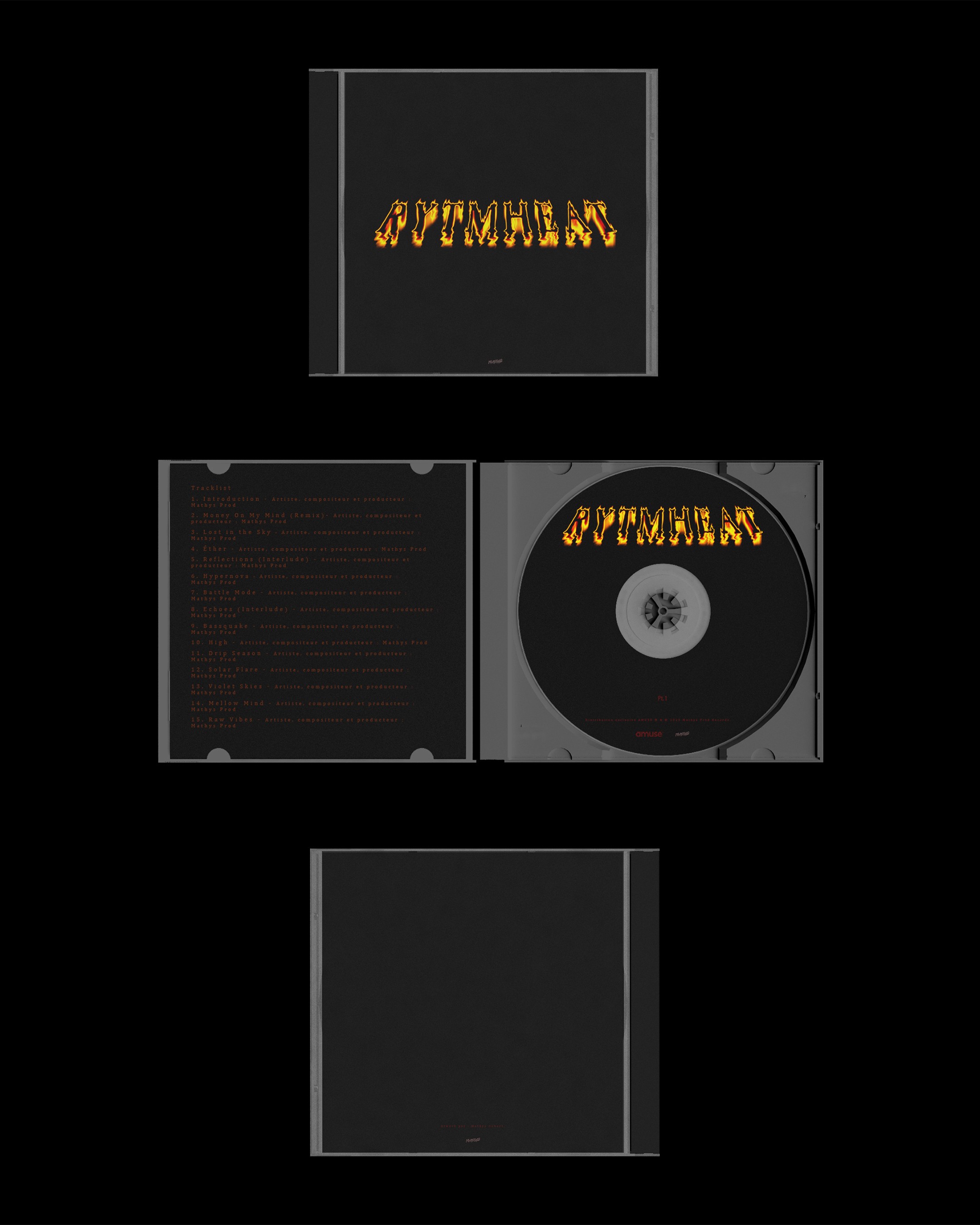 Ce nom, fusionne "rythme" et "heat", incarne l'énergie de mes 30 premières instrumentales. Visuellement, l'identité des pochettes traduit cette intensité : une typographie enflammée et brute pour la première partie, évoluant vers une texture incandescente et consumée pour la seconde. Pour accompagner ce lancement, j'ai ouvert un site dédié, un compte Instagram et une chaîne YouTube diffusant des clips visuels pour chaque morceau.