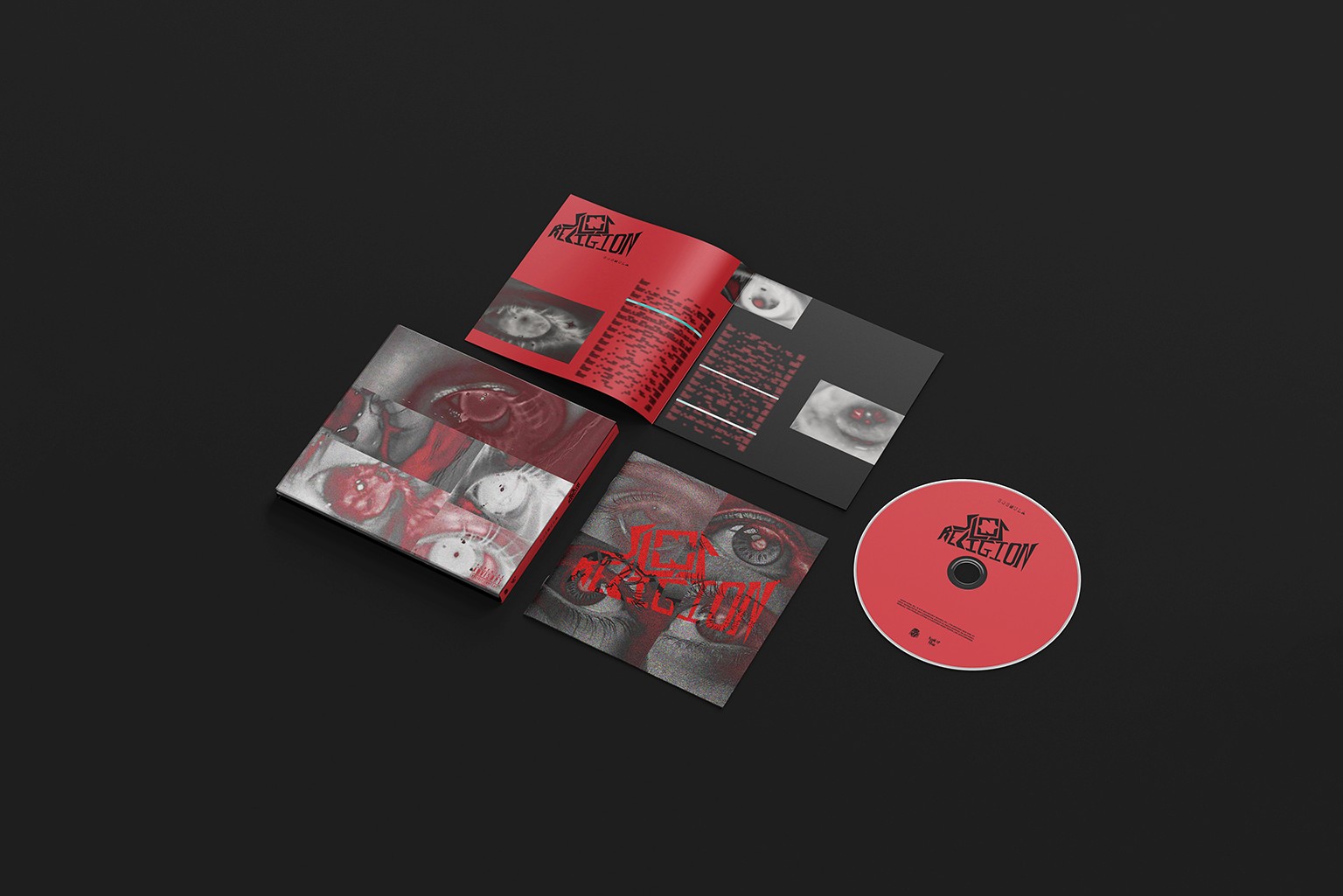 Cette cover pour l'album du rappeur brésilien est volontairement brutale et dérangeante, jouant sur des codes esthétiques "trash" pour incarner l'intensité de la musique. Pour la première fois, j'ai exploité des images de basse qualité et granuleuses afin d'accentuer cet aspect viscéral et sans filtre. Le visuel repose sur une figure centrale dont les yeux, fixant l'auditeur d'un regard louchant et insistant, installent une ambiance intrigante, à la limite de l'angoisse. Dominée par un rouge saturé, symbole de violence et de puissance, la composition capture l'essence brute et sans concession de l'album.